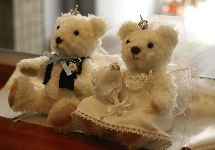 ヘッドリボンは同じ生地にレースをあしらっています。